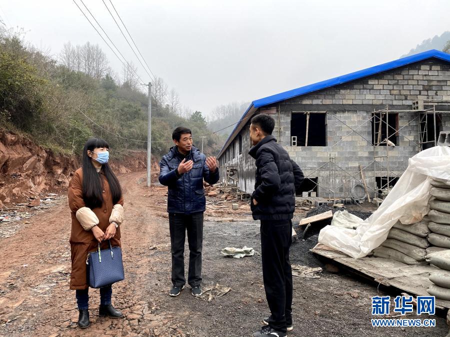 1月27日,駐麻溪口村幫扶工作隊隊長段吉廣(中)在村內協調生豬養殖場建設工作。新華社記者 柳王敏 攝