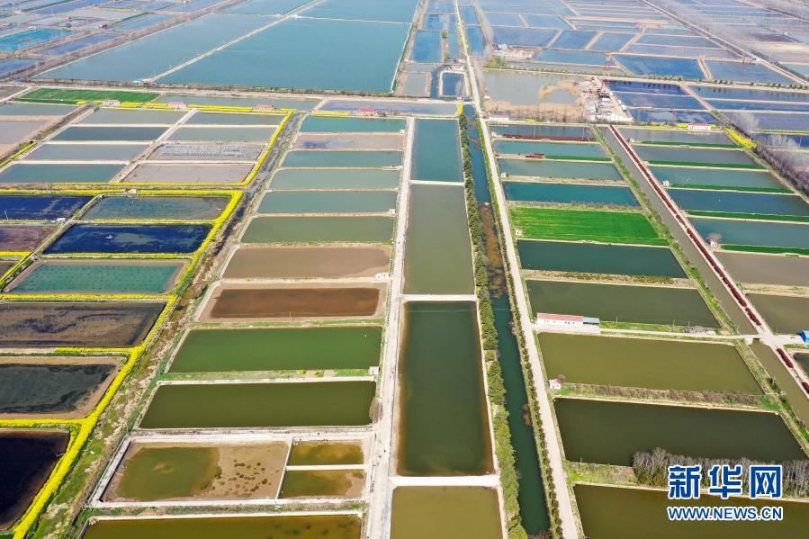 3月24日拍攝的江蘇省淮安市洪澤區西順河鎮國蟹園(無人機照片)。