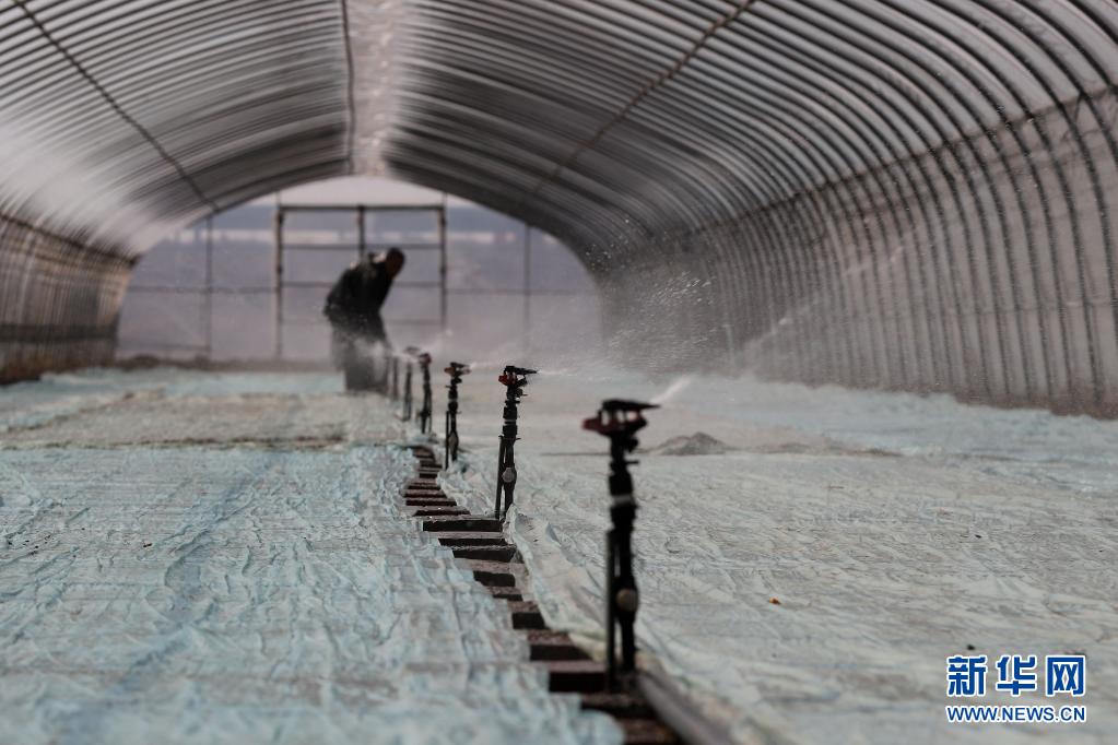 4月6日,河北省唐(tang)山市海(hai)港(gang)經濟開發區水稻種植合作社的(de)社員(yuan)在育秧棚(peng)內給秧盤澆水。
