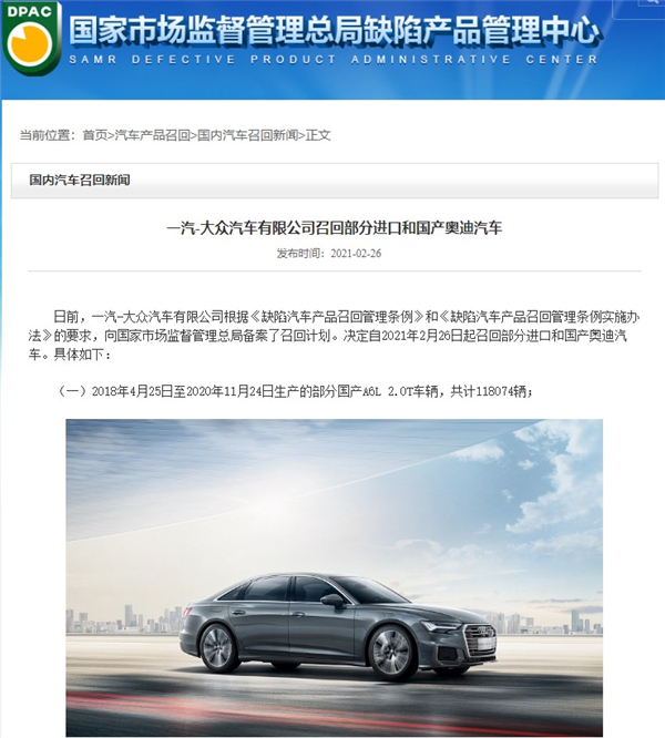 同時,召回原因也是“五花八門”。其中,奧迪召回124800輛,召回原因包括“發動機控制單元中凸輪軸調節器驅動算法的學習功能不完善可能導致結果偏差,可能導致停止運轉”和“供應商制造原因令轉向器中的皮帶輪可能存在尺寸偏差,極端情況下或導致轉向系統鎖止”。