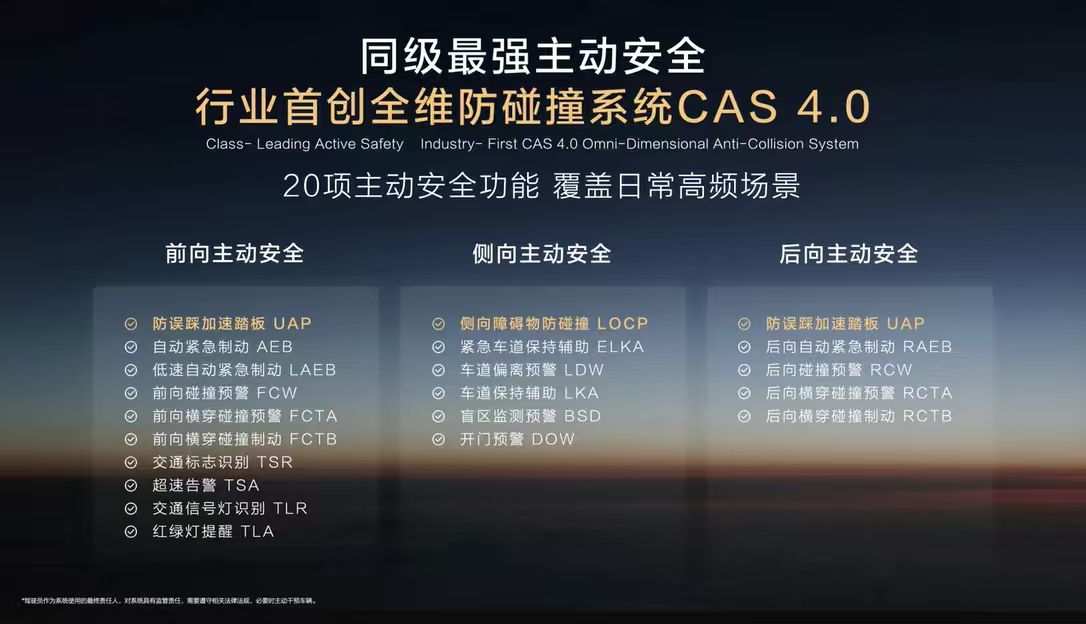 在主動安全領域,全新深藍S07配備了自動緊急制動AEB、側向障礙物防碰撞LOCP、防誤踩加速踏板UPA等一系列功能。這些功能依托華為乾崑強大的安全性能,在突發狀況下能夠迅速響應,有效避免或減輕碰撞傷害,為駕駛者構筑了全方位的安全防線。