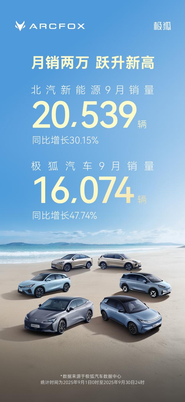 北汽新能源月銷2萬+輛,極狐汽車9月銷量超1.6萬輛,跨越規模拐點,躋身主流陣營。本月,新車型極狐T1、上市即交付,上市首月大定突破35000臺,為品牌注入了新的市場增量;與此同時,核心車型“五系雙子星”憑借800V超充與超長續航、健康座艙等越級配置,持續獲得市場青睞。