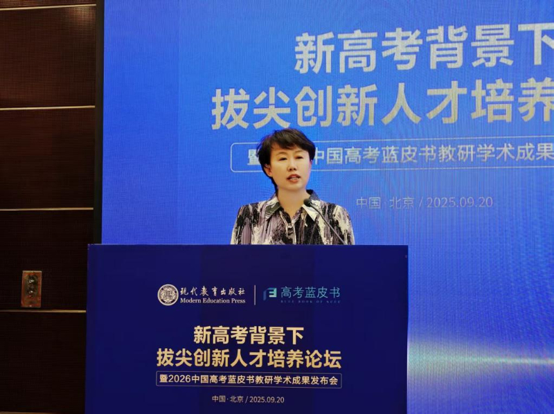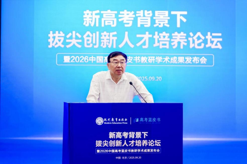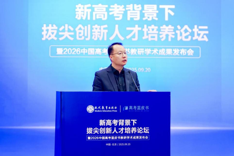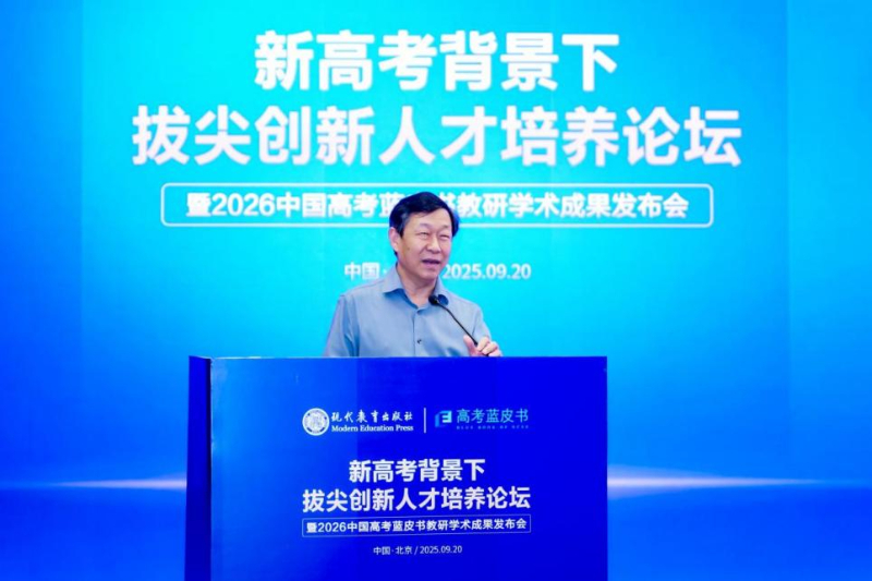 9月20日,由現代教育出版社主辦的“新高考背景下的拔尖創新人才培養論壇暨2026中國高考藍皮書教研學術成果發布會”在北京大學舉辦。本次活動以“立足中國式現代化,構建拔尖創新人才培養新生態”為主題,匯聚教育領域專家學者、知名校長及一線教育工作者,深入解讀高考改革新趨勢,分享拔尖創新人才培養的理論成果與實踐經驗。