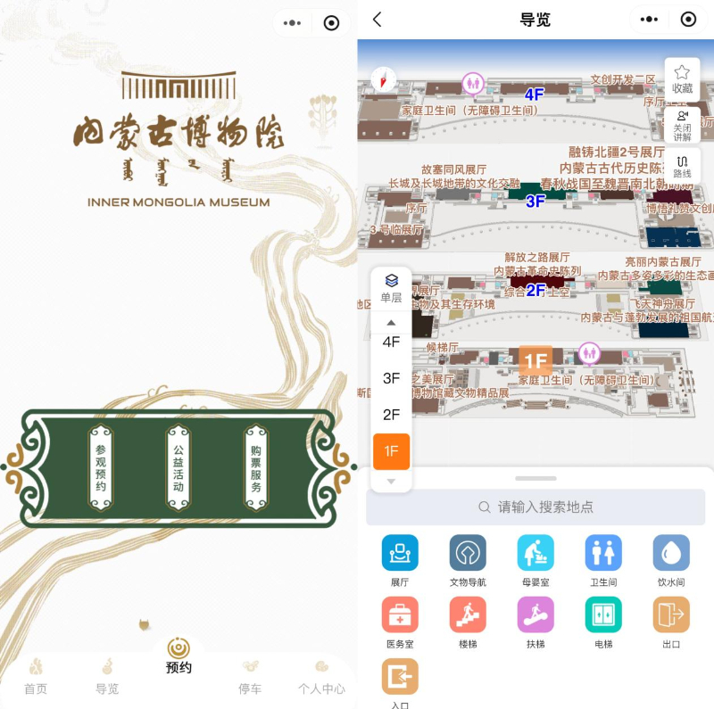 在信息化改造過程中,內蒙古博物院進行智慧服務體系建設涵蓋服務、管理、保護、宣傳四大板塊,包括18套應用系統、十類配套設施和五項數字內容的制作,形成有機協同的數字化體系。前端,以云游內博小程序、智慧導覽等形式提升參觀體驗;中臺,通過全臺全網預約、客流監測、一云多屏系統等增強管理效能;后臺,依據文博物聯數據系統、智能數據中心、AI智能助手等為運營服務提供堅實的數據支撐。