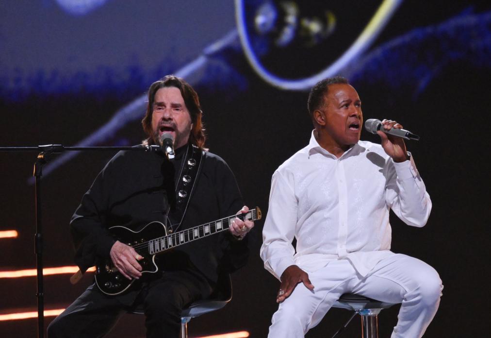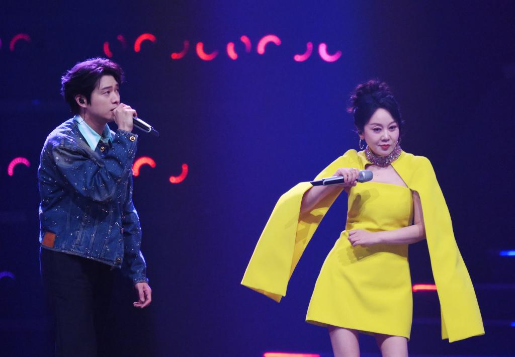9月28日,王力宏(左)和單依純在演唱《落葉歸根》。