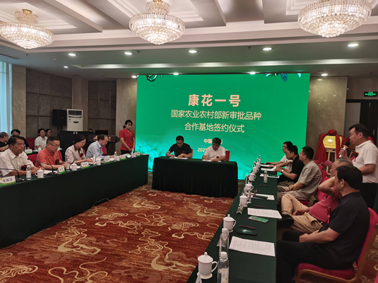會議由中國食藥安全促進會無抗功能食材食品分會、中國中藥協會種養殖專業委員會聯合主辦。會上,山東康花生物開發有限公司董事長周海清就新品種“康花一號”金銀花的花期長、豐產豐收、藥用成分高等特點進行了推介;山東康花生物開發有限公司與中國農科院飼料研究所飼料檢測與安全檢測中心簽訂金銀花無抗養殖領域合作開發協議,與盛世龍唐數字農業科技公司簽約金銀花在種植領域的中藥微生物肥料合作開發,與山東美華食品有限公司簽約“康花一號”無抗雞蛋及金銀花鳳凰雞合作養殖基地項目,同時簽約河北承德、山西陽高等地“康花一號”種植合作基地項目。現場展示了金銀花紅茶、金銀花白酒、金銀花飲料、金銀花面膜、金銀花噴劑等產品。