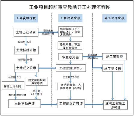 該模式的核心在于“承諾即啟動、拿地即發證”。在辦理過程中,當工業用地進入招拍掛程序(啟動或進行中),可向審批部門提出申請。行政審批、資規、住建、政府采購等部門隨即打破傳統“先拿地、后審批”的線性流程束縛,依據土地出讓文件及規劃條件等,審批部門提前開展建設方案審查,審查合格后出具《建設工程設計方案審查意見函》,并明確項目各項指標及費用。住建、政府采購等部門據此先行開展施工圖設計文件審查、施工和監理招標采購等關鍵環節的實質性審查工作,為企業后續辦理正式手續奠定堅實基礎。