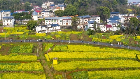 "(魏東升 攝)3月16日,九江瑞昌第五屆鄉村花海半程馬拉松在當地武蛟鄉舉行。"