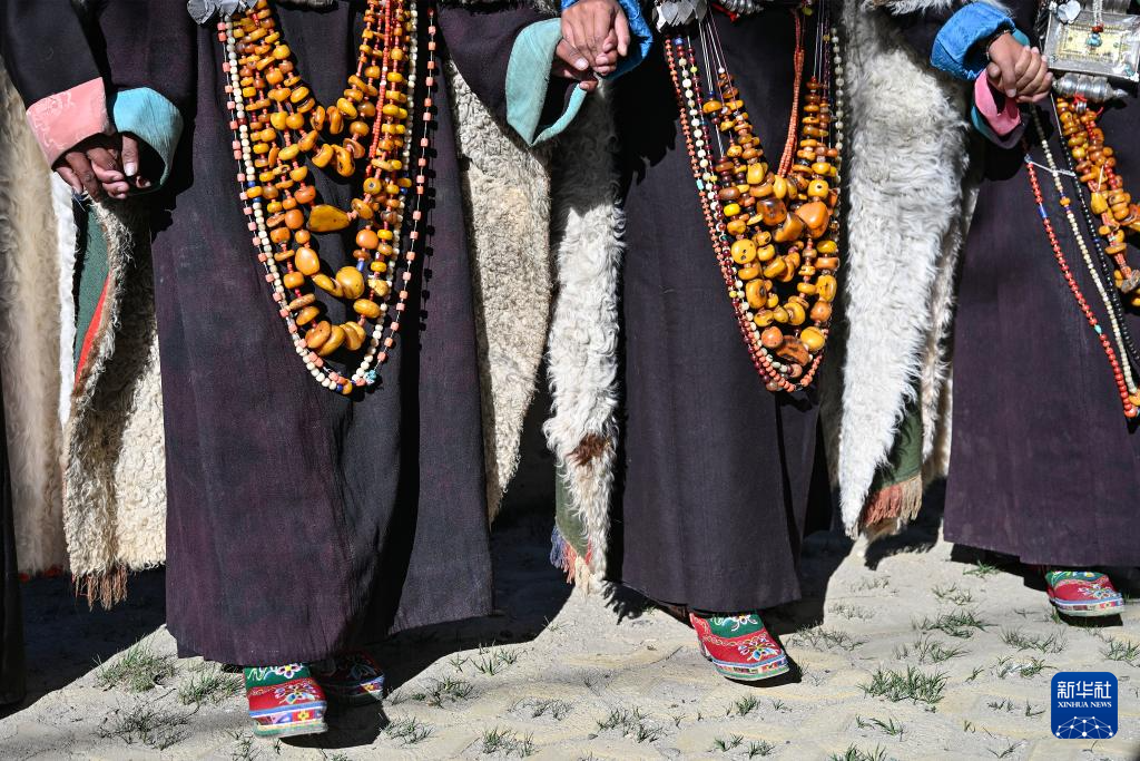 9月9日(ri),在西藏阿里地區普蘭(lan)縣科迦村(cun),村(cun)民(min)身著(zhu)普蘭(lan)服(fu)飾(shi)表(biao)演宣(xuan)舞(wu)。