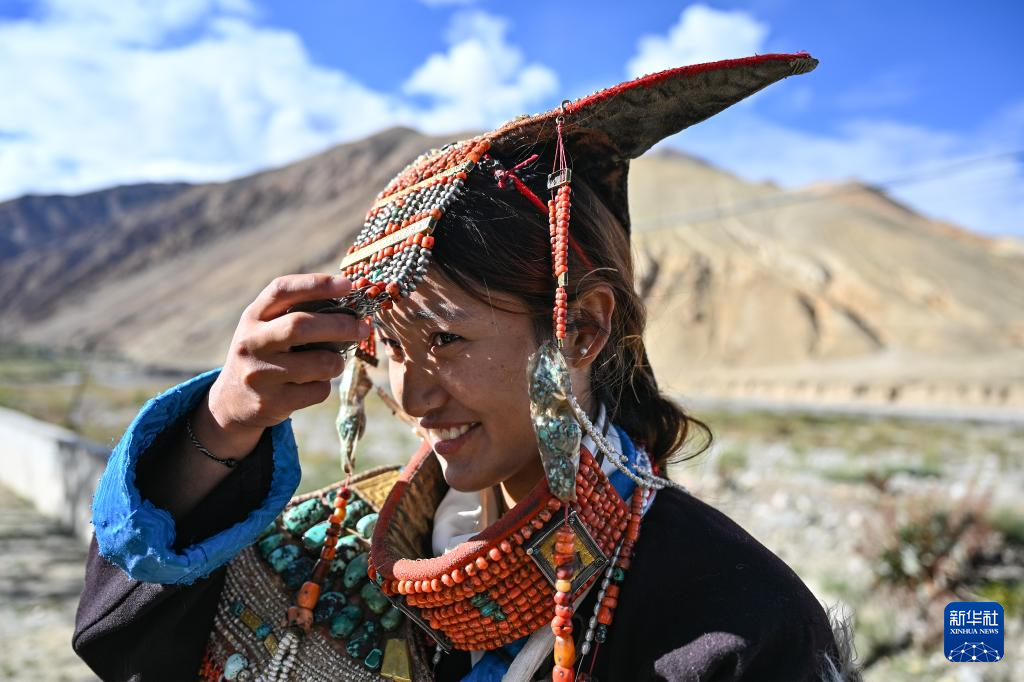 9月9日,在西藏阿(a)里地區普蘭(lan)縣科(ke)迦村(cun),村(cun)民展示(shi)普蘭(lan)服(fu)飾(shi)。