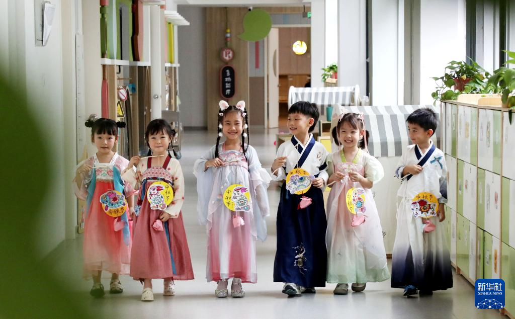 9月12日,浙江省臺州市仙居(ju)縣迎(ying)暉幼兒(er)園小(xiao)朋友(you)在老(lao)師(shi)的指導下學做手(shou)工月餅。