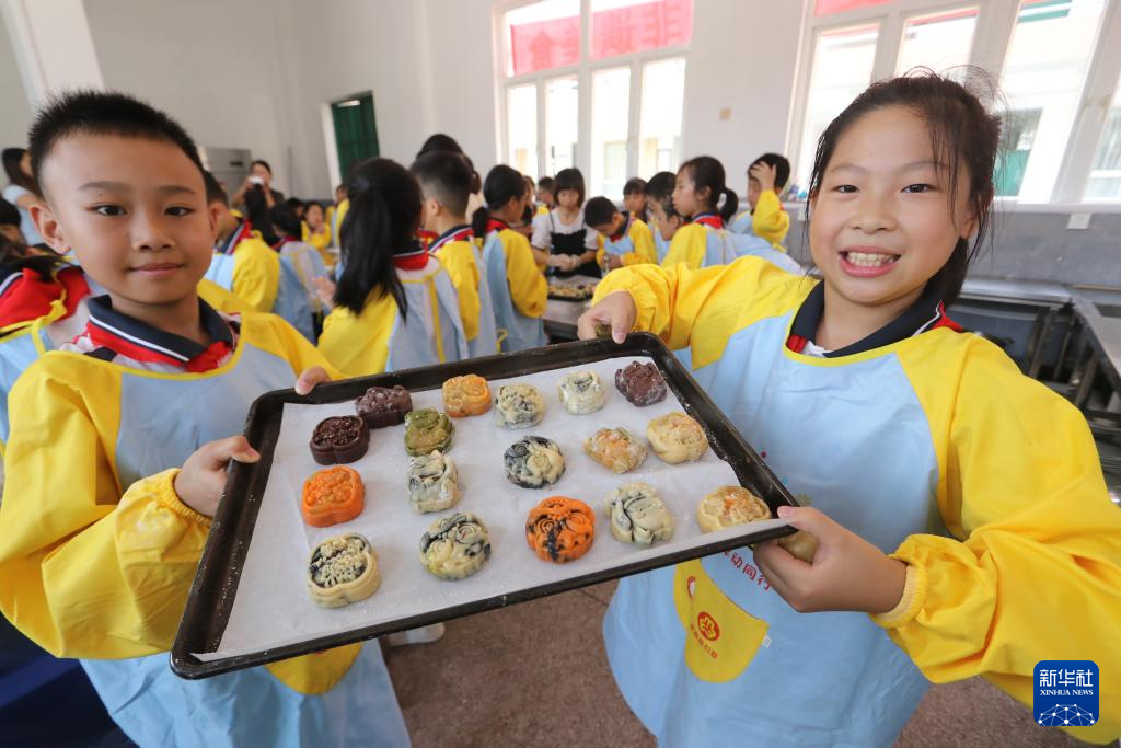 9月12日,福建省南平(ping)市順昌縣實驗小學思賢校(xiao)區(qu)的學生展示在家長指(zhi)導下制做的月餅。