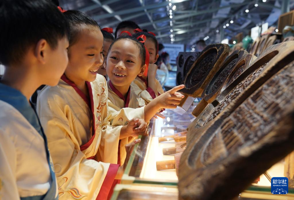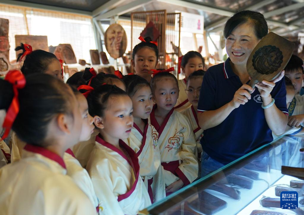 9月11日,孩子們在參(can)觀傳統手工糕(gao)餅模具。