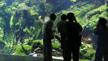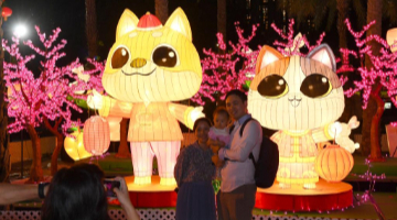 9月12日,在長(chang)興縣開(kai)發區中心幼兒園,孩子在觀看同學及家(jia)長(chang)制(zhi)作的中秋創意燈籠。