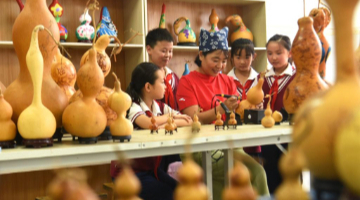 9月12日,在長(chang)興縣開發區中心(xin)幼兒園,老師在向(xiang)孩(hai)子們介紹同(tong)學及家長(chang)制作的(de)中秋創意燈籠。