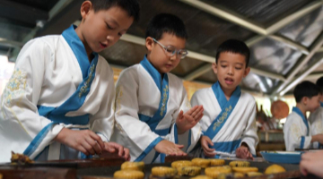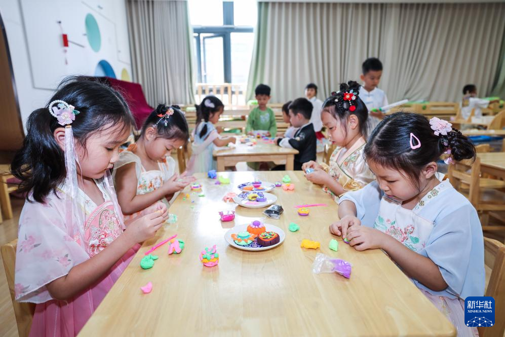 9月12日,在長興縣開發區中心幼(you)兒園(yuan),孩子(zi)們用彩泥(ni)制(zhi)作創意(yi)“月餅”。