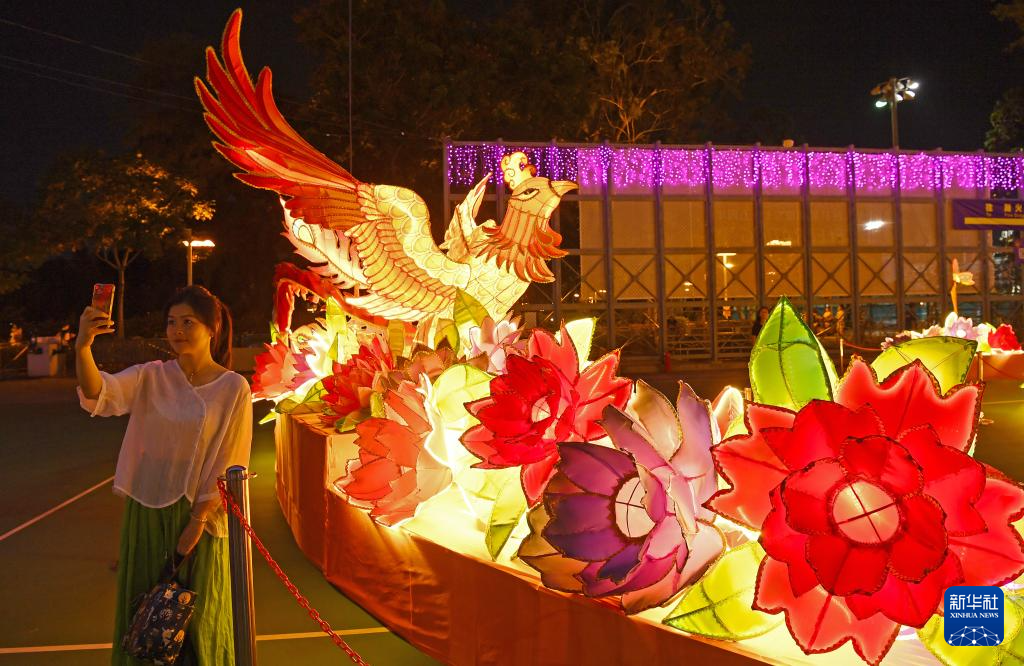 9月12日,觀眾在(zai)彩燈會上留(liu)影(ying)。
