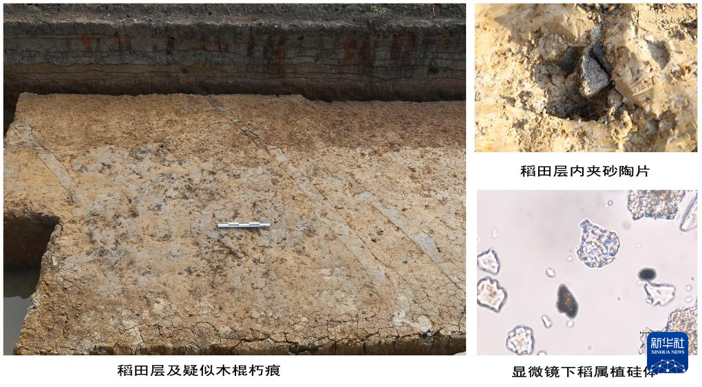 浙(zhe)江衢州皇(huang)朝墩遺(yi)址早期(qi)稻田遺(yi)存(cun)及相關依據(ju)(拼版照片)。