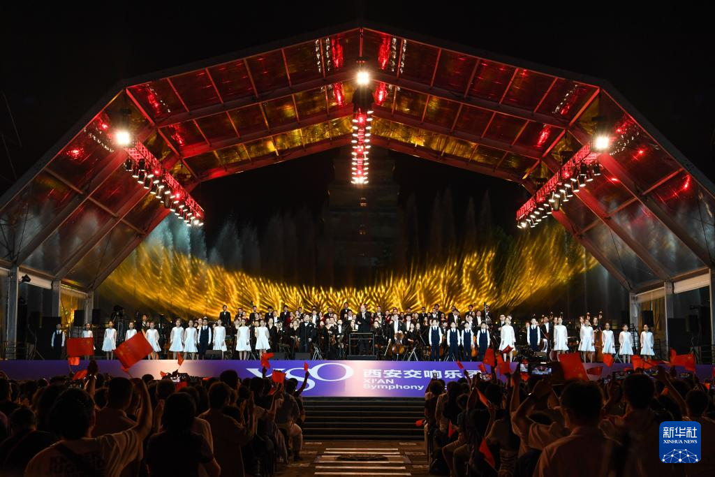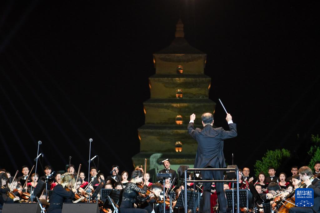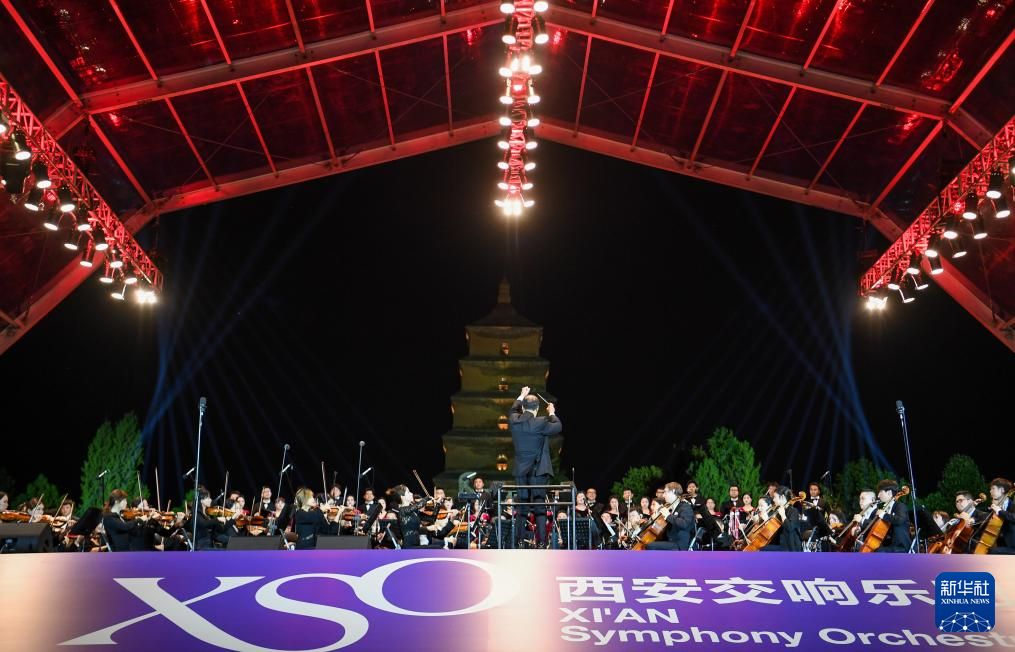 這是(shi)9月13日拍(pai)攝(she)的2024西安交響樂團(tuan)大雁(yan)塔戶外公演現場。