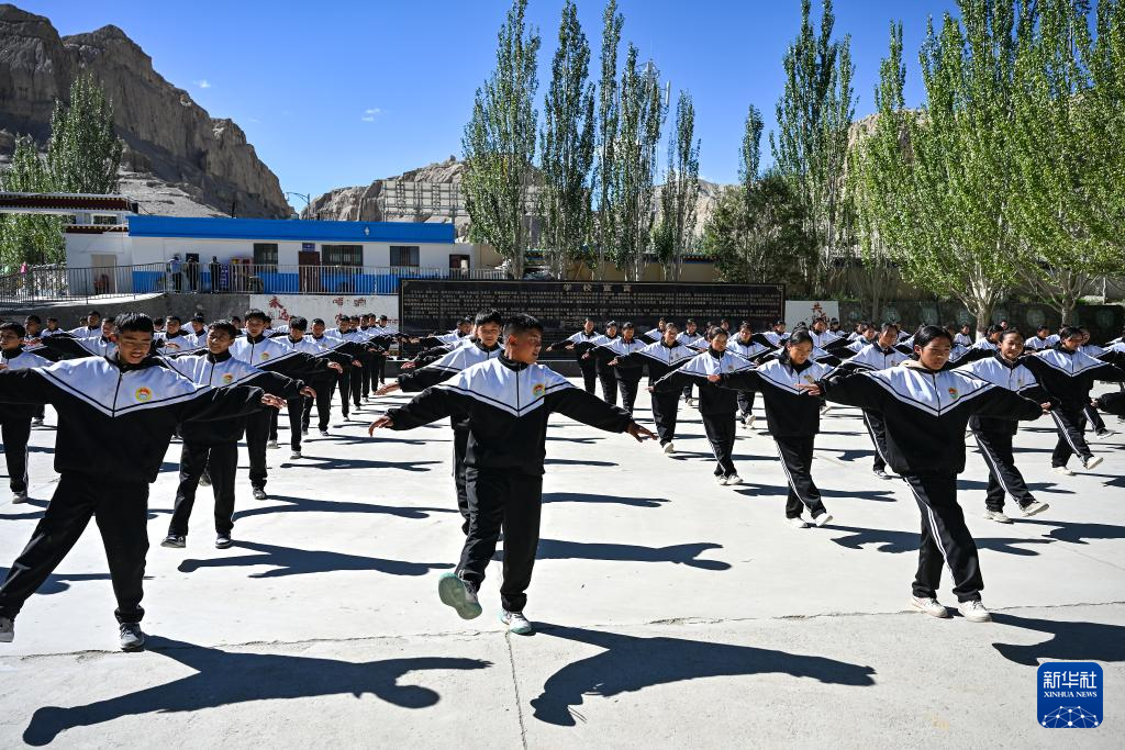 在西藏阿里地區(qu)札(zha)達縣九年一貫制學(xue)校,學(xue)生們跳起融(rong)入“宣舞”特色的課間操(9月10日攝(she))。
