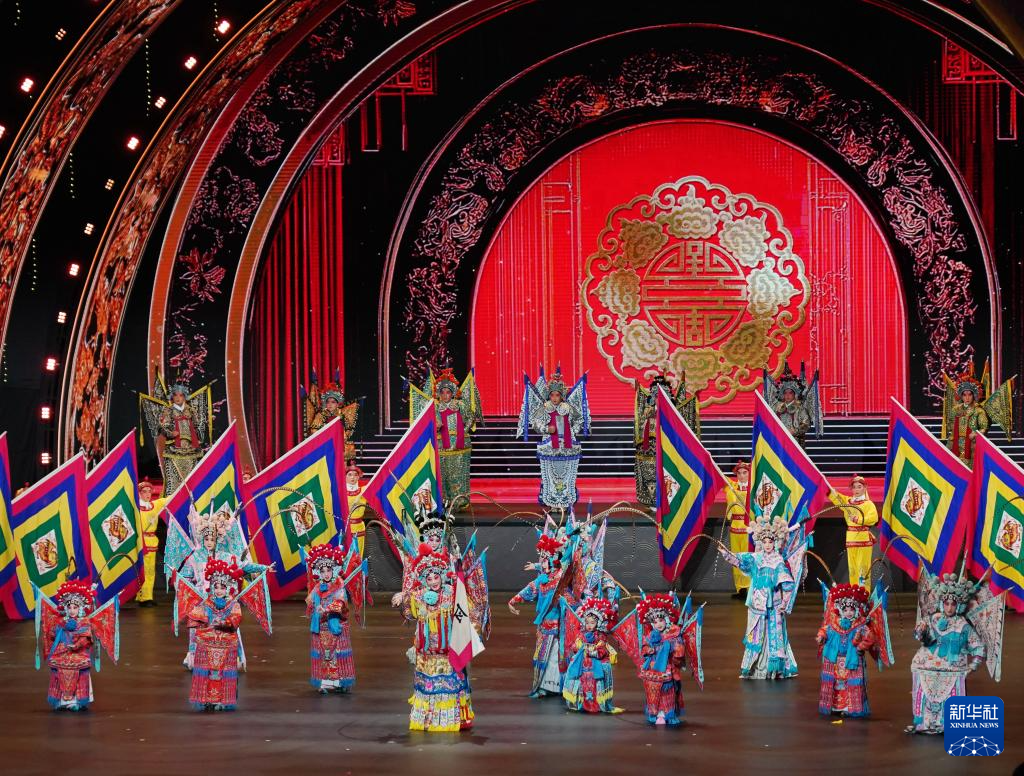 9月(yue)19日,演職人員(yuan)在(zai)北京文(wen)化論壇專場文(wen)藝演出(chu)中表演戲(xi)曲聯唱《巾幗英雄穆桂英》。