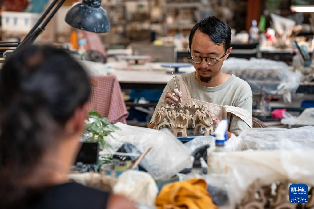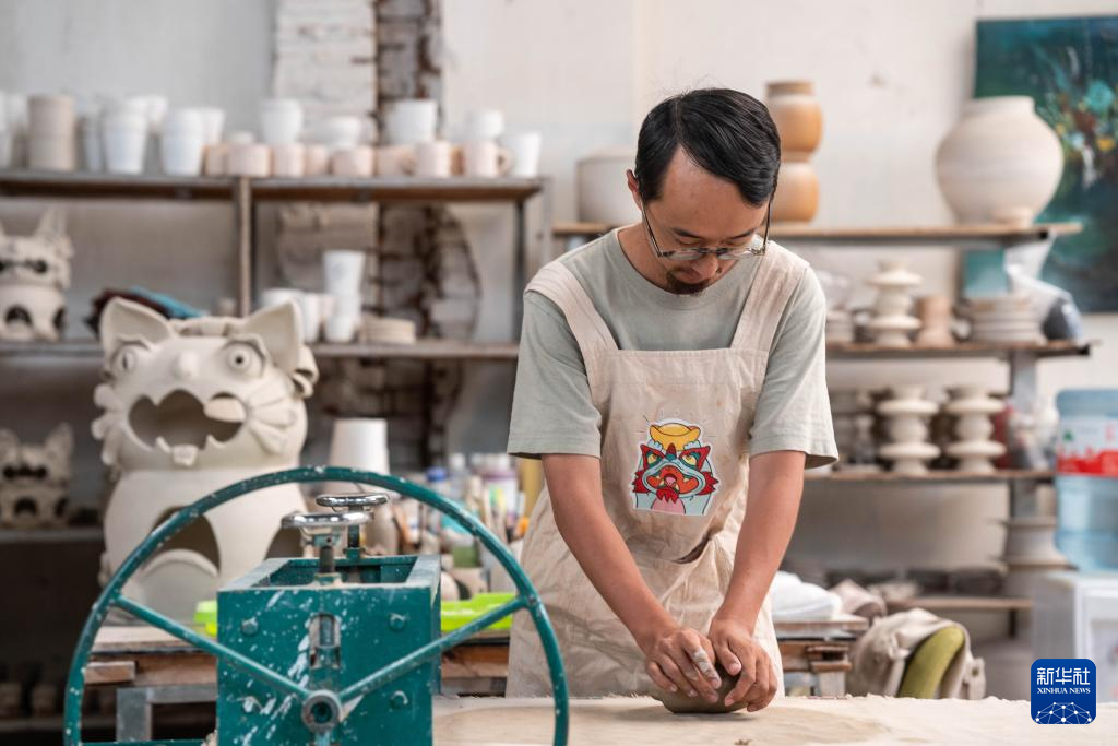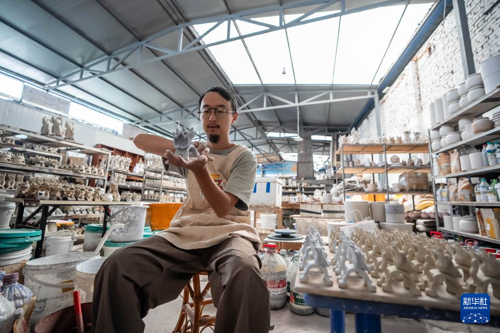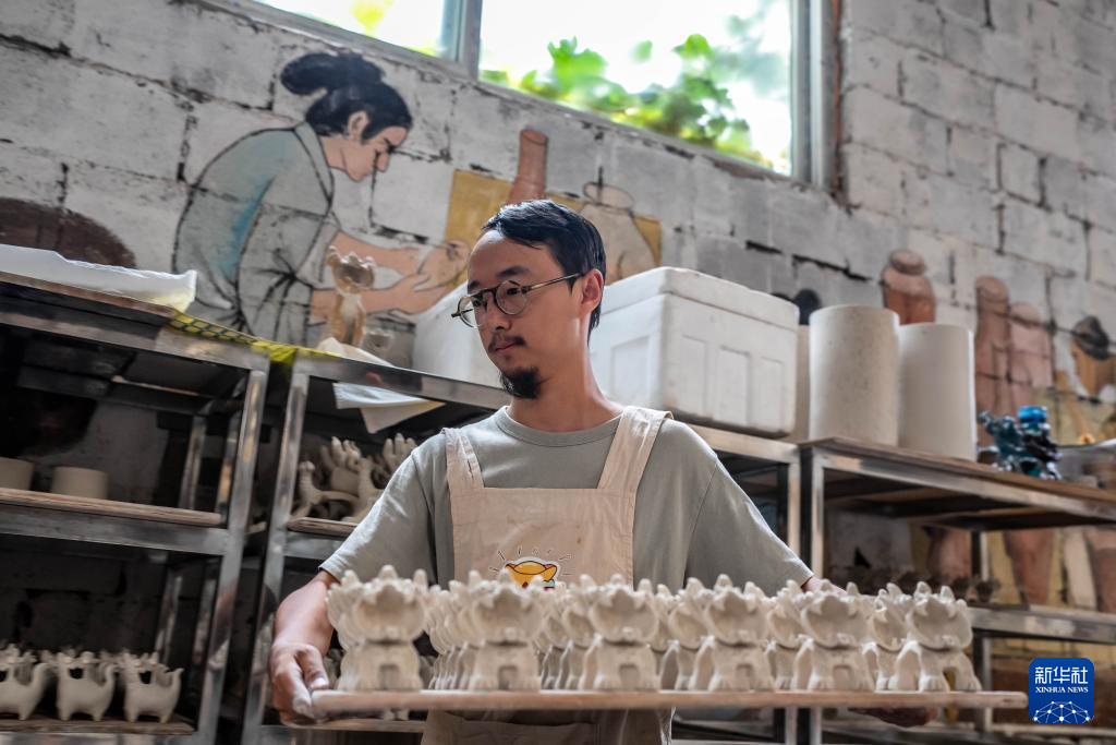 王子(zi)強在(zai)工作室內制(zhi)作瓦(wa)貓(9月18日攝)。