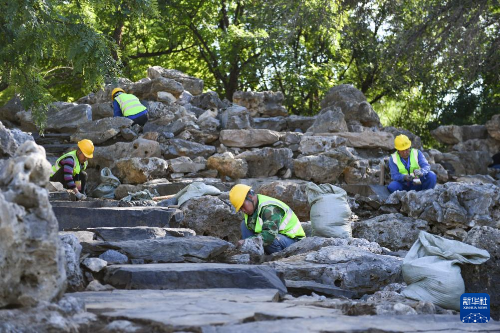 9月22日,北京市考古(gu)研(yan)究院工作(zuo)人員向活動參與者介紹(shao)文源閣遺址中(zhong)的蹬道(dao)遺跡。