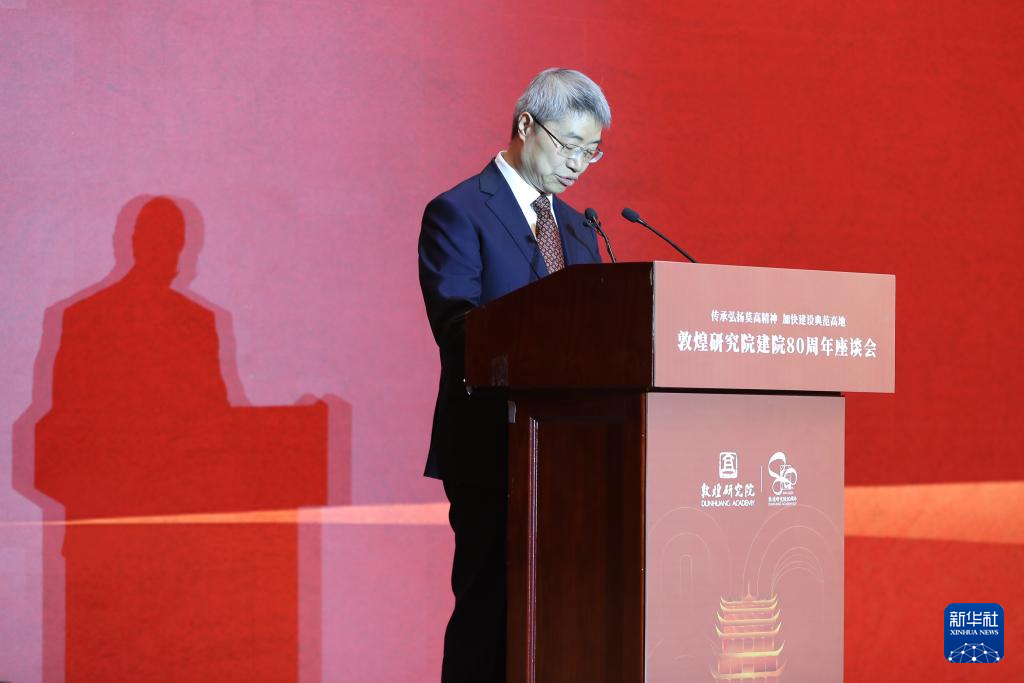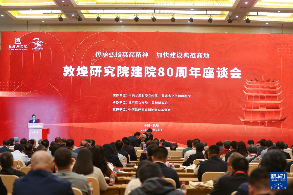 當日,以(yi)“傳(chuan)承弘揚(yang)莫(mo)高精神 加(jia)快(kuai)建(jian)(jian)設典范(fan)高地”為(wei)主題(ti)的敦煌(huang)研究院建(jian)(jian)院80周年座(zuo)談(tan)會在甘肅省敦煌(huang)市舉行。來自(zi)敦煌(huang)研究院、國(guo)家文(wen)物局、甘肅省有關(guan)部門、國(guo)內高校、文(wen)博單(dan)位以(yi)及(ji)國(guo)內外合作機(ji)構的近400名代表參加(jia)座(zuo)談(tan)會。