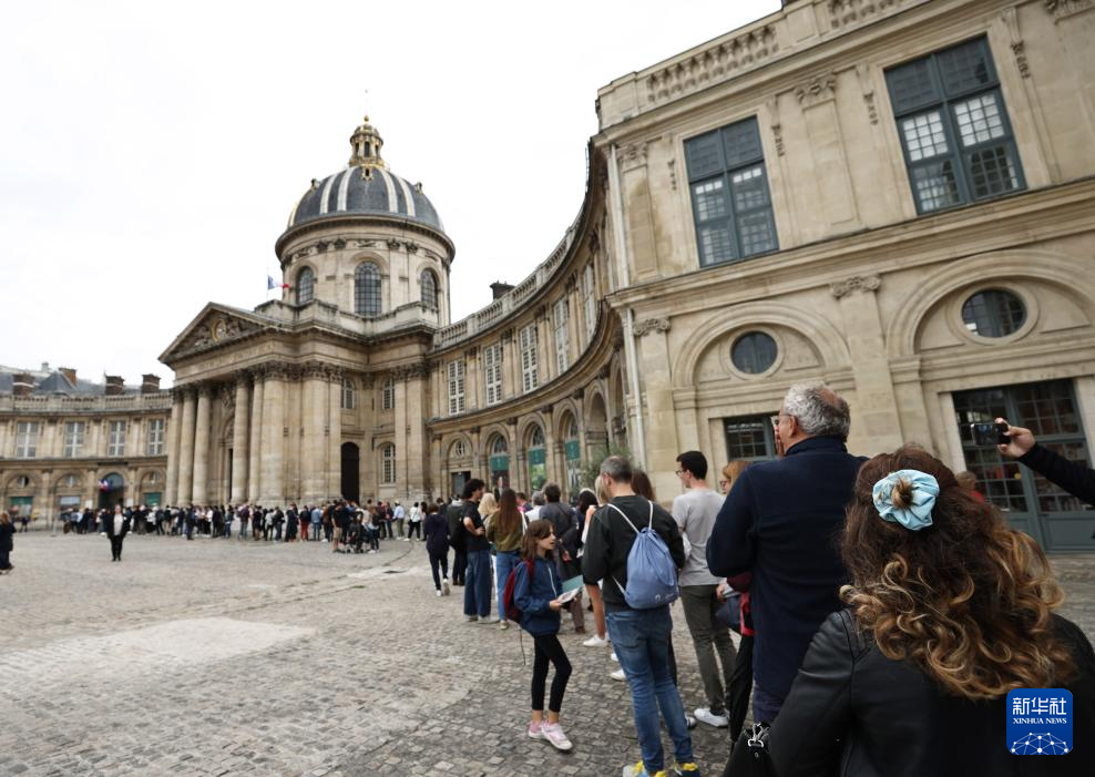 9月22日,在法國巴黎(li)的法蘭(lan)西學院(yuan),前來參觀的人們在門前排起(qi)長隊(dui)。