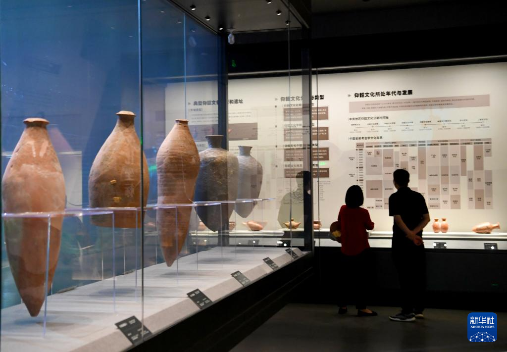 9月24日,參觀者在(zai)仰(yang)韶文化博物館觀看展品。