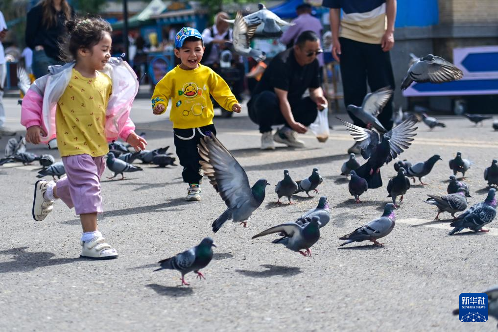 小朋友在新疆伊犁哈薩克自治州伊寧市(shi)喀贊其民(min)俗旅游區游玩(5月(yue)11日攝)。新華社記者(zhe) 丁磊 攝
