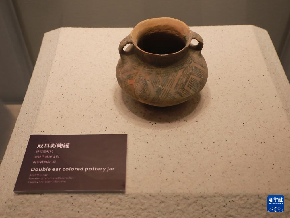 這是9月26日拍攝的安特生返還文(wen)物馬家窯雙耳(er)彩陶罐(guan)。