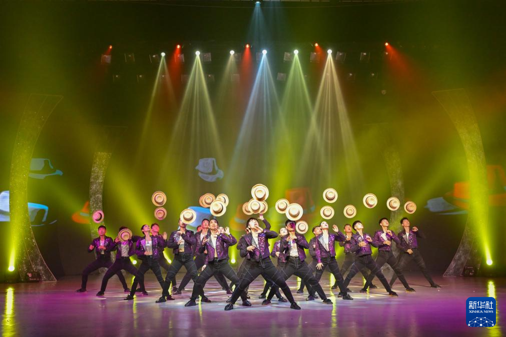 9月25日,山東省雜技團演員(yuan)在開幕式(shi)上表演雜技《草帽》。