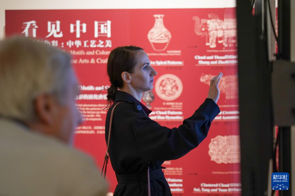9月27日(ri),在(zai)比利時布魯塞爾中國文(wen)(wen)化中心,觀(guan)眾(zhong)在(zai)“看見中國”之(zhi)《紋樣與色彩:中華工藝之(zhi)美》數字文(wen)(wen)化展上參觀(guan)。
