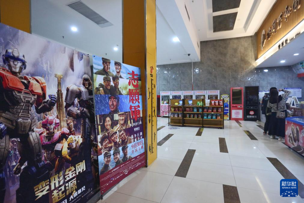 10月7日,在山東(dong)省臨沂市郯城縣一家影(ying)城,觀眾從電影(ying)海報前(qian)走過。