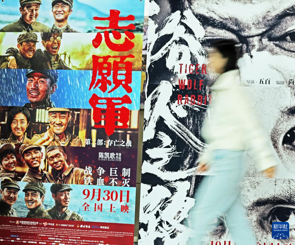 10月7日,在浙江省嘉興市一家影(ying)城(cheng),觀影(ying)市民從電(dian)影(ying)海報前走過。