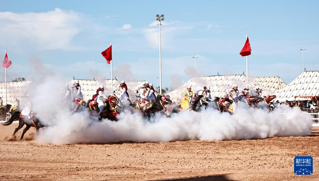 10月5日(ri),人們在摩洛哥杰迪代(dai)馬(ma)術節上參加(jia)傳統馬(ma)術表演。