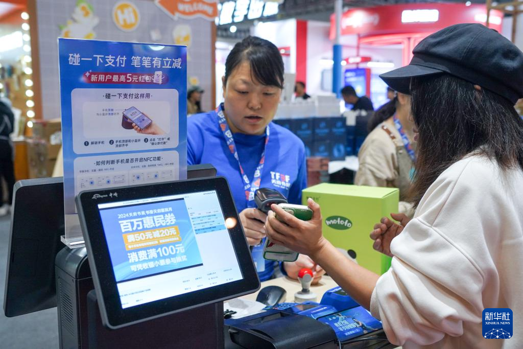 10月(yue)11日,讀(du)者在(zai)2024天(tian)府(fu)書展現場(chang)使用(yong)購書惠民券結賬。