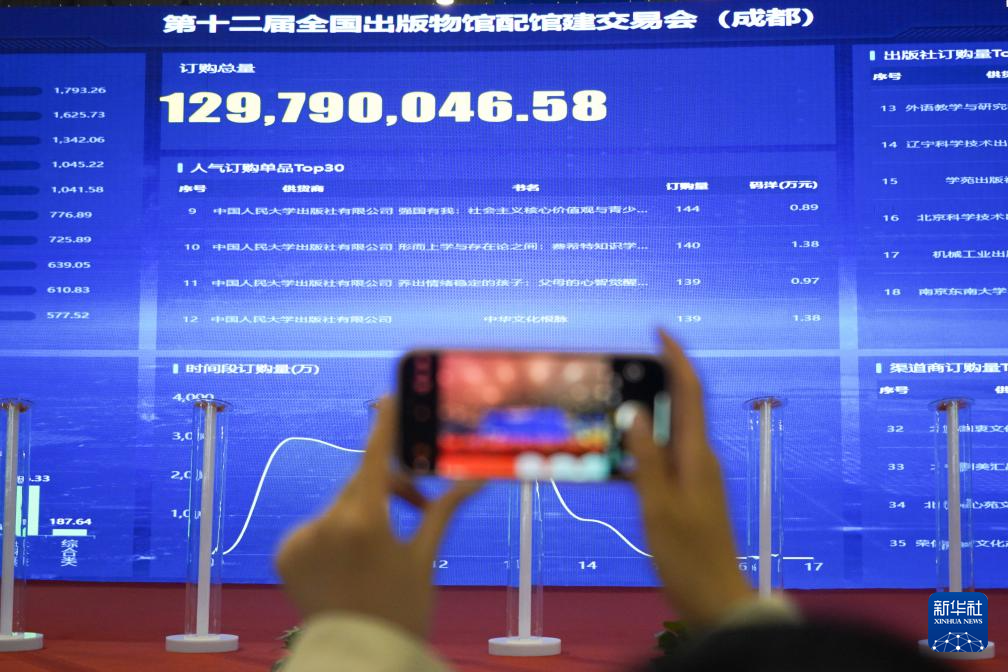 10月11日,參(can)展商在全(quan)國出(chu)版物館(guan)配館(guan)建交易會(hui)現場拍(pai)攝(she)實時交易數(shu)據。