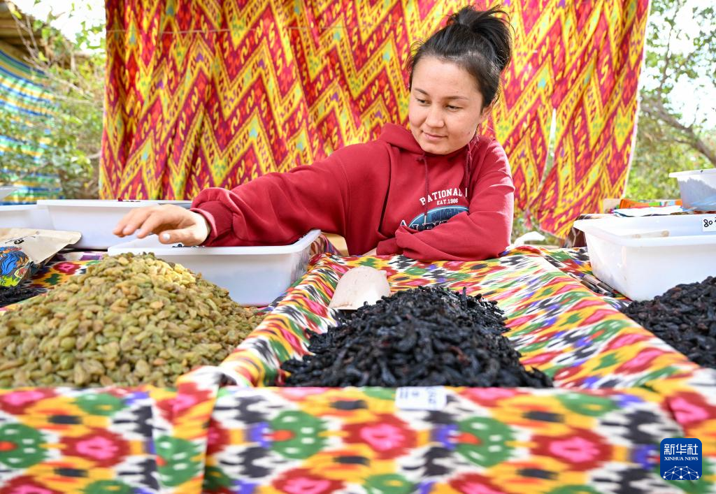 村民在吐峪(yu)溝(gou)景區(qu)內售賣葡萄(tao)干(10月8日攝)。