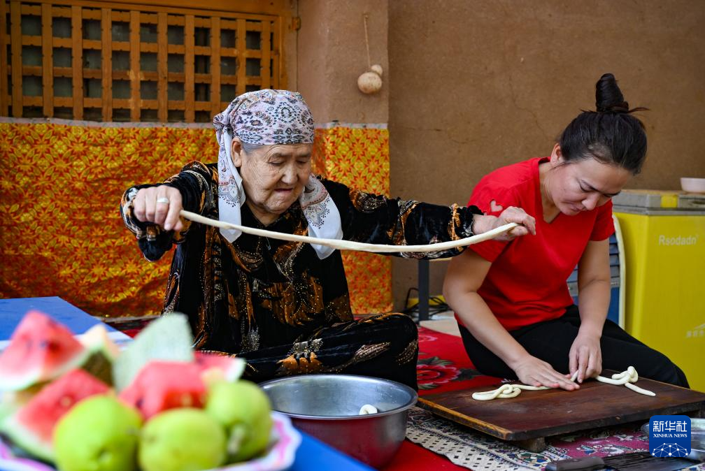 村民妮熱孜罕·麥合木提(ti)(左)和孫女帕提(ti)古(gu)麗·加(jia)帕爾(er)在家中(zhong)制作午飯(10月8日攝)。