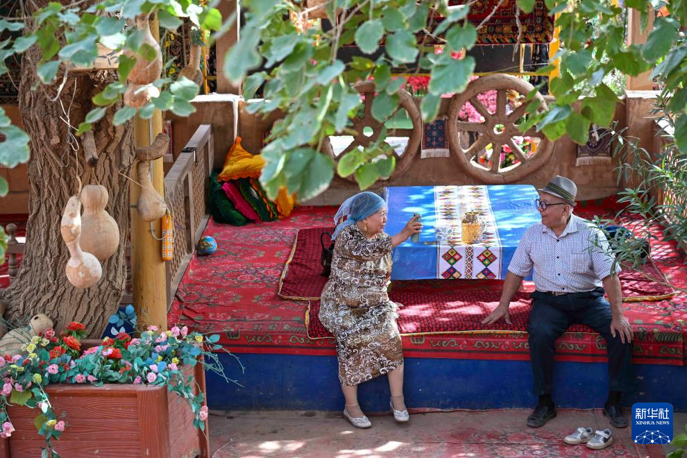 人(ren)們在(zai)新疆鄯(shan)善縣吐(tu)峪溝(gou)鄉(xiang)吐(tu)峪溝(gou)村休息聊天(10月7日攝)。
