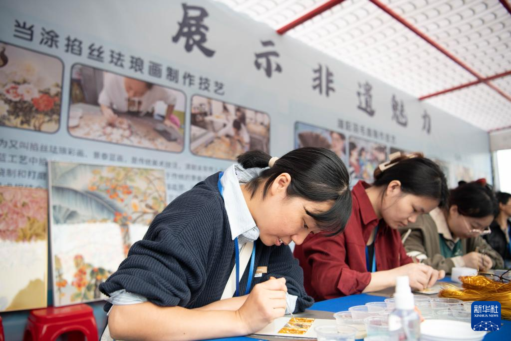 這是第36屆馬鞍山李(li)白詩(shi)歌(ge)節開幕式現(xian)場舉(ju)辦(ban)的非遺展演活動(10月(yue)13日攝)。