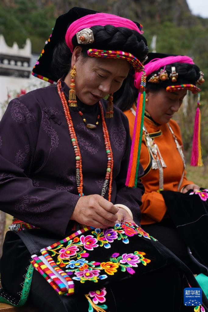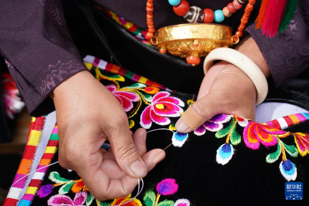 10月12日,嘉絨藏族刺繡甘孜州非遺(yi)傳(chuan)承人(ren)阿姆在四川(chuan)省丹(dan)巴縣巴底鎮色足村繡花。