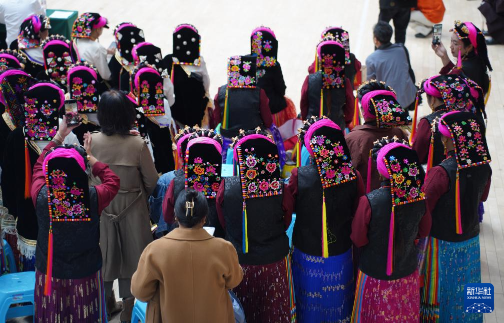 10月11日,佩戴藏族刺繡(xiu)頭帕的(de)婦(fu)女在四川省丹巴縣縣城參(can)加活動。