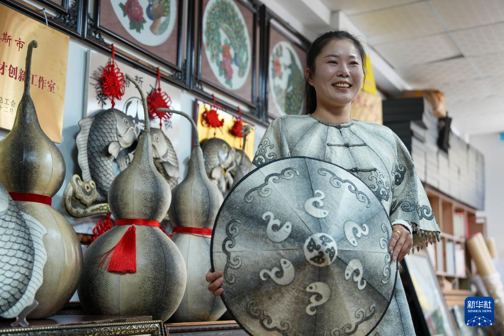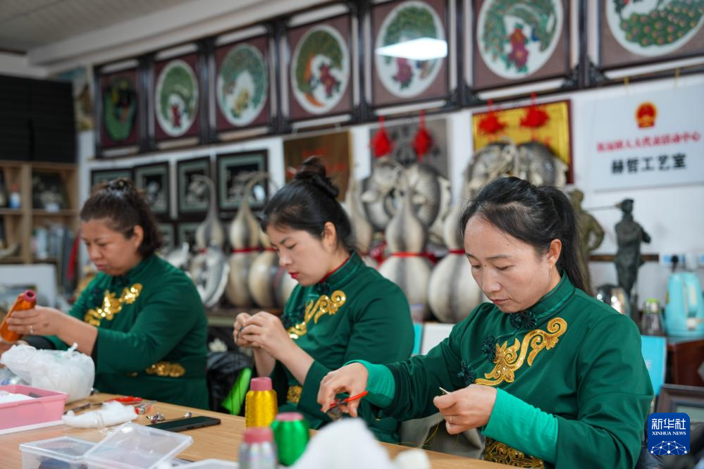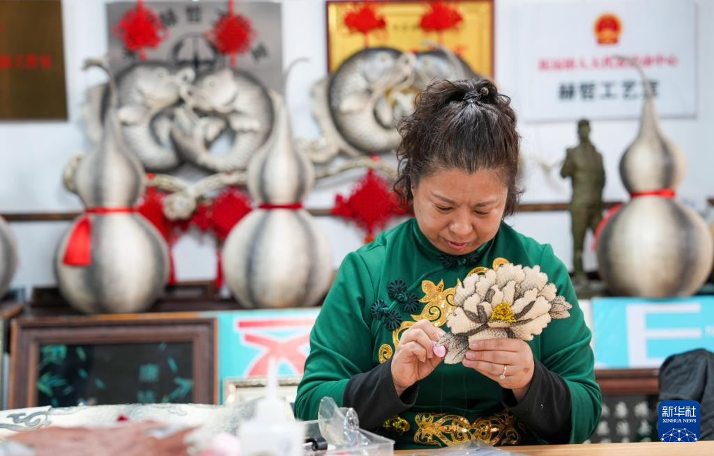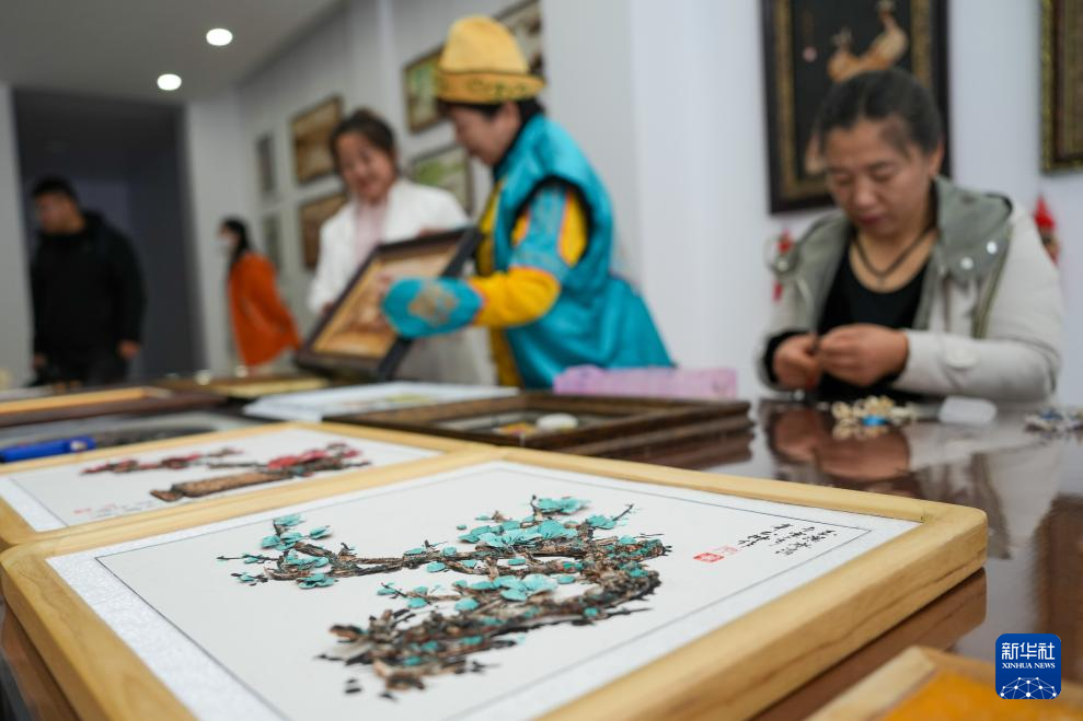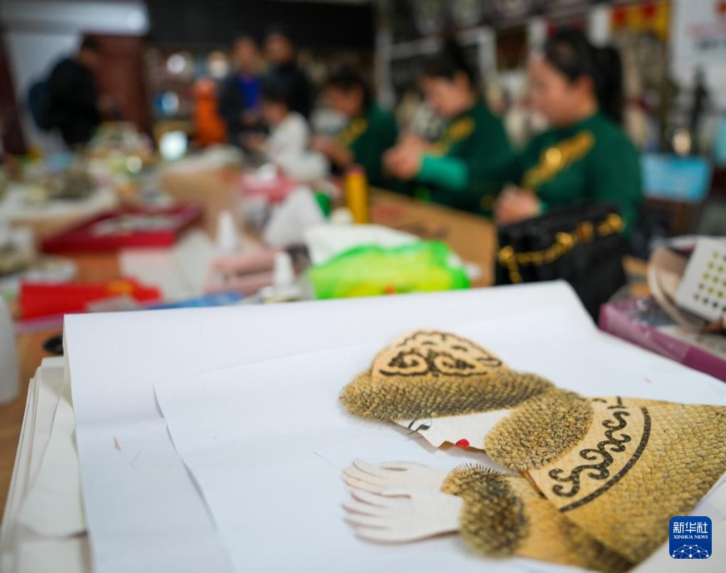10月12日(ri),在黑龍江省佳木斯撫遠市(shi)米比(bi)赫(he)哲(zhe)工藝室,學員在進行魚皮文(wen)創產品制作。