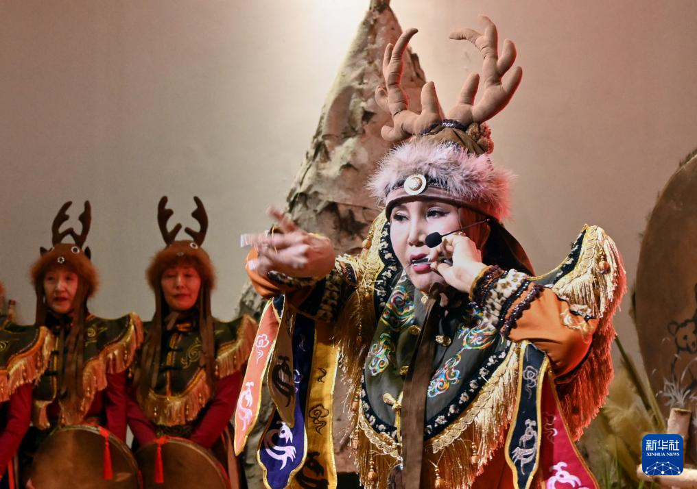 10月11日,赫哲族(zu)篝火(huo)舞傳承人尤迪(di)向來訪者展示民(min)族(zu)舞蹈《芒(mang)莫尼 烏蘇里》。