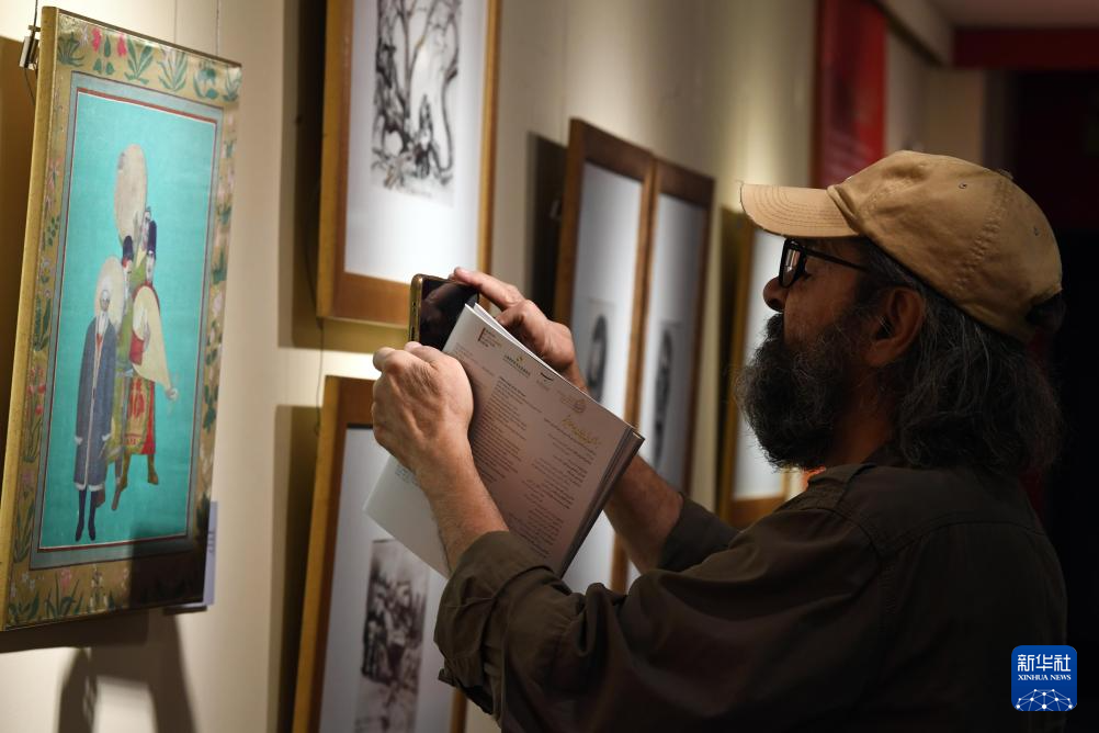 10月12日,在(zai)伊朗首(shou)都德(de)黑蘭的馬(ma)利克國(guo)家(jia)博物館,觀眾在(zai)“絲路長云——中國(guo)藝術文化精品展”現(xian)場拍攝展品。