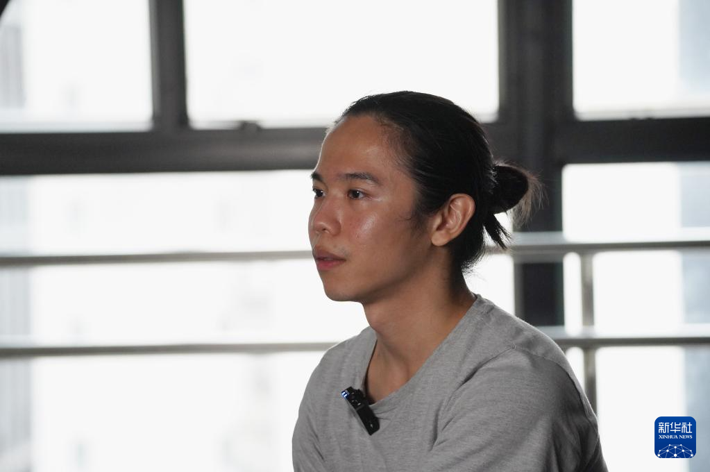 香港(gang)舞蹈團首席舞蹈員王志昇在接受記者采訪(9月24日攝)。新華社發(譚佳銘 攝)
