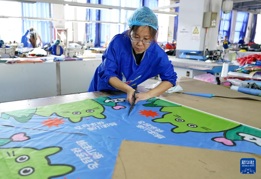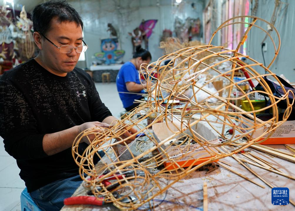 10月14日,在(zai)山東(dong)省(sheng)濰坊市寒亭區的一家風箏(zheng)生產企業(ye),工人在(zai)制作(zuo)風箏(zheng)。